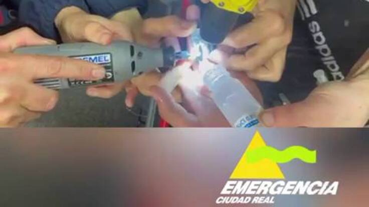 Momento en el que los bomberos sierran con gran precisión el anillo del dedo de un adolescente / Emergencia Ciudad Real