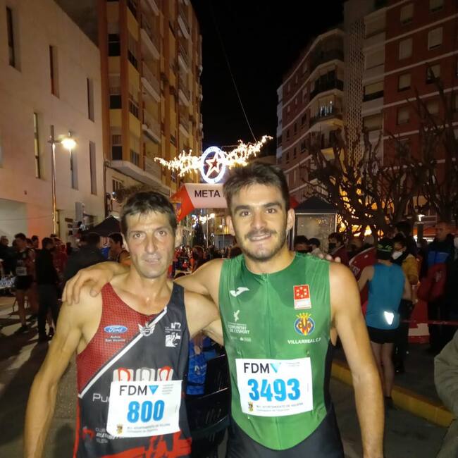De esta forma, tanto Andrés Micó, que llegó primero a meta... como el atleta yeclano Alejandro Ortuño que lo hizo a continuación, son los ganadores, con un doble primer puesto, una situación hasta ahora inédita en la inmensa mayor parte de las carreras, en este caso de la prueba absoluta de la San Silvestre villenera 2021.