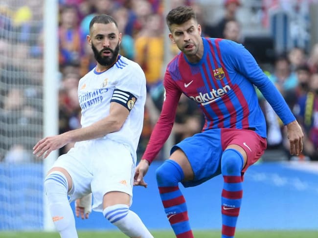 Karim Benzema y Gerard Piqué en un momento del último Clásico(Getty Images)