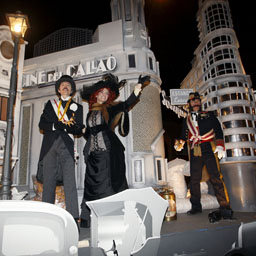 Era la primera vez que los Reyes paseaban por la Gran Vía. Radio Madrid desplegó a sus redactores para ir siguiendo a don Juan Carlos y doña Sofía en un periplo "al galope" que recorrió los establecimientos más emblemáticos de nuestra calle más céntrica.
