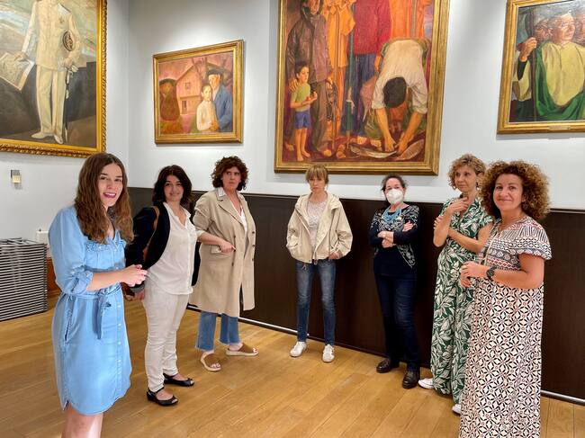 María Serrano, junto a varias responsables de comercios en Hondarribia, presentando la nueva campaña de bonos. / Foto; Ayunt. Hondarribia.