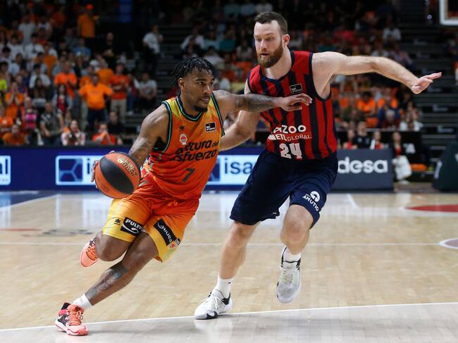 El diferente estado de confianza de ambos equipos se notó en el arranque, pero los puntos de Jasiel Rivero conectaron a los locales y un motivado Chris Jones acabó de engancharlos poniéndoles a correr para aprovechar su buen trabajo en el rebote defensivo. La entrada de Martin Hermannsson dio criterio al ataque estático local y el Valencia cogió el mando ante un Baskonia que se atascó ante la intensidad defensiva de su rival (18-14, m.10).