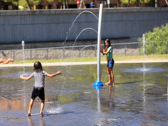 MADRID, 07/08/2023.- Vista de la zona de Madrid Río donde acude la gente acude a refrescarse este lunes. La Agencia Estatal de Meteorología (Aemet) alerta del comienzo este lunes de una nueva ola de calor y mantiene la alerta amarilla, de riesgo, por temperaturas máximas que podrán superar los 34 grados centígrados (°C) en la Sierra y los 36 grados en el resto de la Comunidad de Madrid.EFE/ Fernando Alvarado / FERNANDO ALVARADO (EFE)