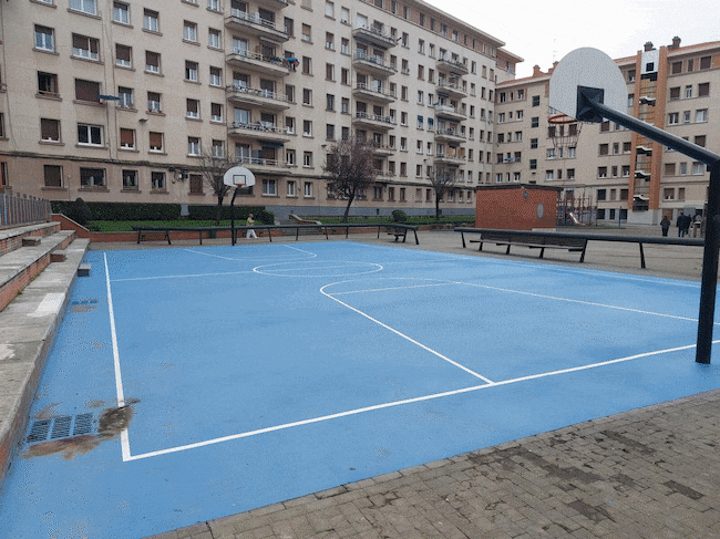 De forma simultánea, el Consistorio ha llevado a cabo la rehabilitación de otra cancha de baloncesto en los Jardines Intxaurtxueta, situados en el barrio de Errekalde. En este espacio, las tareas han incluido la limpieza de la superficie para eliminar suciedad, el saneo de la pista y la corrección de grietas e irregularidades.