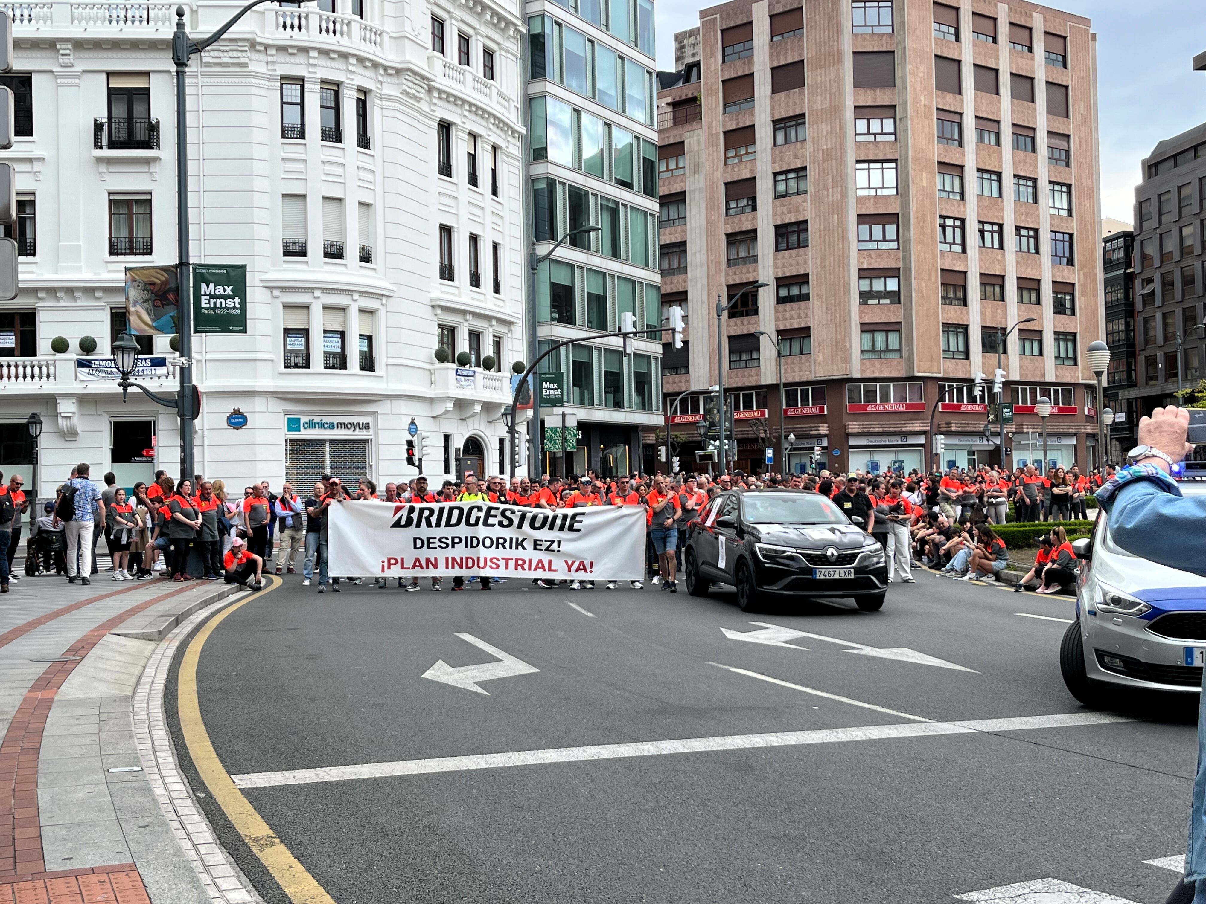 Uno de los focos de atención ha sido la presencia masiva de trabajadores de Bridgestone, que han protagonizado una marcha desde la planta de Basauri hasta la plaza Moyua de Bilbao, en el marco de su octava jornada de huelga contra el ERE que plantea despedir a 335 personas.