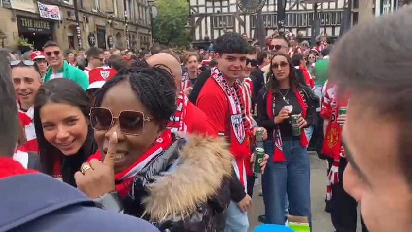 En la antesala del decisivo duelo de semifinales de la UEFA Europa League entre el Athletic Club y el Manchester United —que se disputa esta noche a las 21:00 horas en Old Trafford—, una imagen ha acaparado la atención de la hinchada rojiblanca desplazada a tierras inglesas: la presencia de María Arthuer, madre de Iñaki y Nico Williams, entre los aficionados del conjunto bilbaíno en las calles de Manchester.