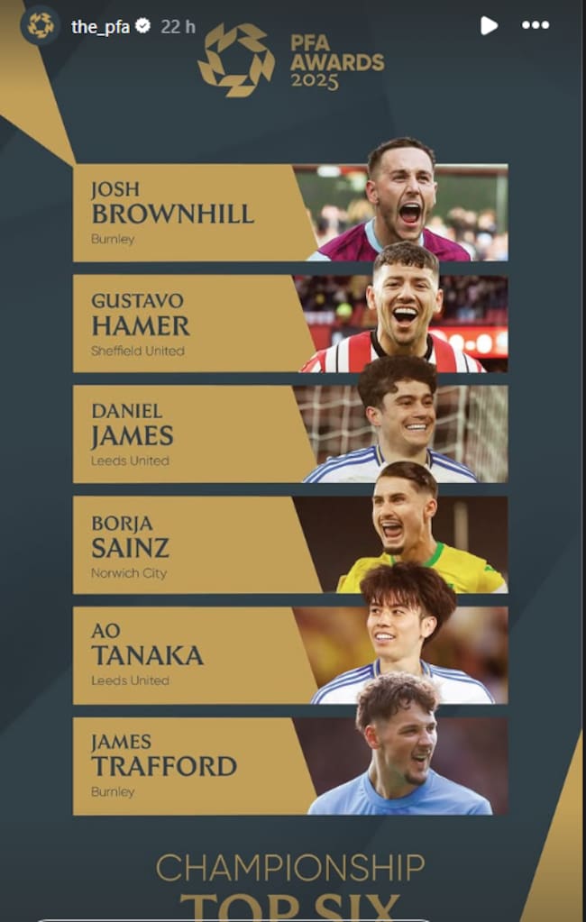 El PFA Fans’ Player of the Season se decide por votación abierta entre los aficionados y es uno de los reconocimientos individuales con más tradición en el fútbol británico. Este año, además de Borja Sainz, están nominados Ao Tanaka, Emmanuel Latte Lath, Finn Azaz, Tom Cannon y Tyrese Campbell.