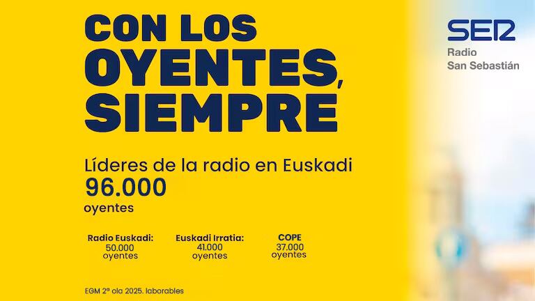 Con esta cifra, la SER supera en 46.000 oyentes a Radio Euskadi, segunda en el ranking, y más que duplica la audiencia de Euskadi Irratia, tercera opción en el territorio.