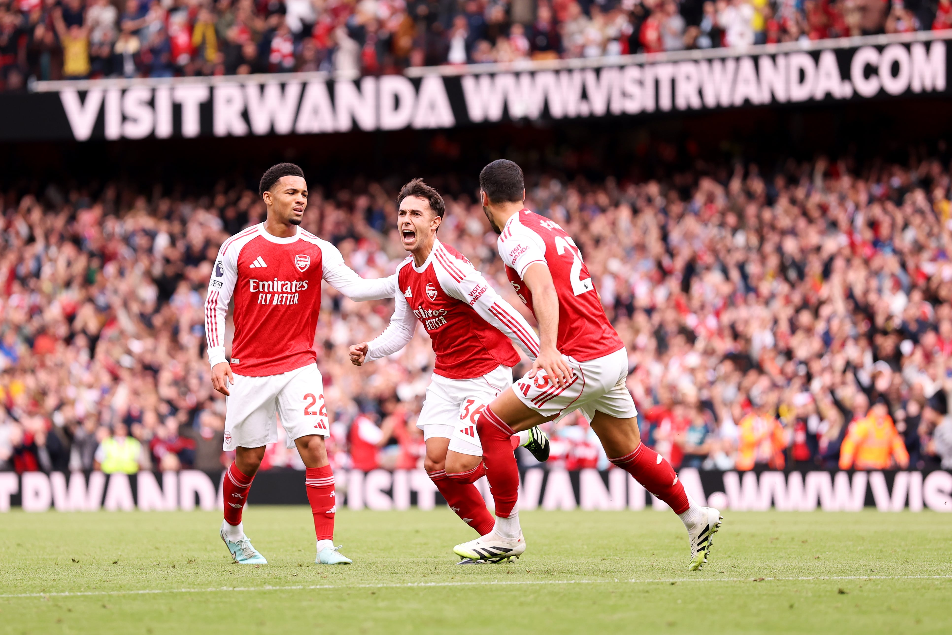 LONDON, ENGLAND - SEPTEMBER 13: Martin Zubimendi of Arsenal scores his team's first goal during the Premier League match between Arsenal and Nottingham Forest at Emirates Stadium on September 13, 2025 in London, England. (Photo by Jack Thomas/Getty Images) / Jack Thomas