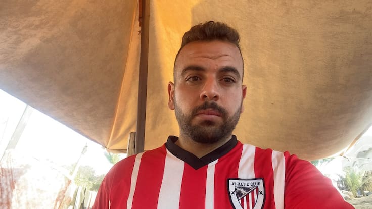 Mahmoud cuenta que sueña con estar algún día en San Mamés y que esa ilusión es una de las pocas que mantiene intactas. Desde el corazón de la guerra, asegura que él y muchos en Gaza “quieren al Athletic” y que ese sentimiento no se lo arrebata ni el conflicto ni el barro que inunda su tienda.