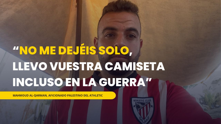 Mahmoud Al-Qarman, cuyo testimonio ha conmovido a la afición rojiblanca, remite a Radio Bilbao un vídeo exclusivo antes del partido de esta tarde (19:00 h) ante el Real Madrid: agradece el apoyo y pide que su voz llegue al corazón de la hinchada.