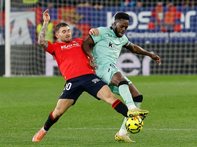 El delantero del Athletic Bilbao Iñaki Williams (d) ante Javi Galán, del Osasuna, durante el encuentro ante Osasuna / Villar Lopez (EFE)