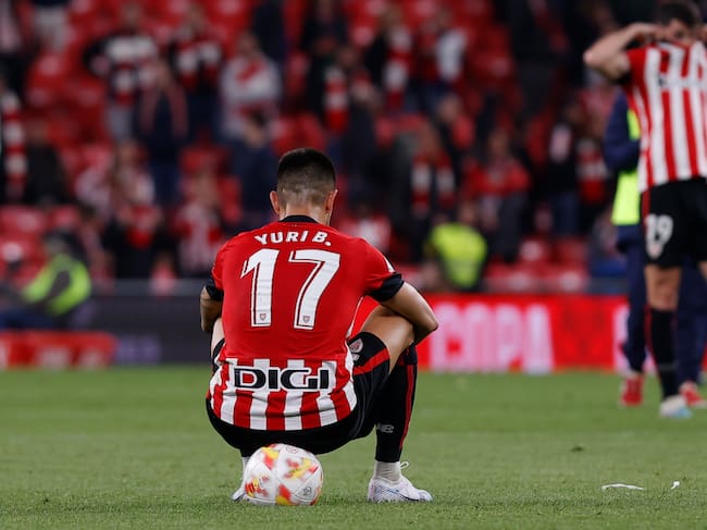 BILBAO (VIZCAYA), 04/04/2023.- El defensa del Athletic Yuri Berchiche tras el partido de vuelta de semifinales de la Copa del Rey que Athletic Club de Bilbao y Atlético Osasuna disputaron hoy martes en San Mamés. EFE/Miguel Toña / Miguel Toña (EFE)
