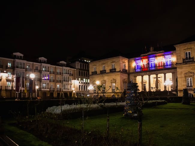 En Vitoria ya se nota que la ciudad y la provincia apoyan al conjunto azulgrana. Además de viajar a Valencia en persona, los representantes de las instituciones han decidido engalanar la capital vasca con los colores azules y rojos del equipo. Se ven banderas en las fachadas y se proyectan los colores en edificios públicos como la Casa Palacio de la Provincia de la Diputación Foral.