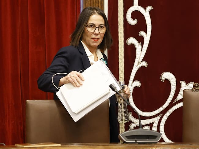 GETXO (BIZKAIA), 29/01/2026.- El pleno del Ayuntamiento de Getxo (Bizkaia) debate este jueves debate mociones de EH Bildu y el PP en las que piden la dimisión de la alcaldesa, Amaia Agirre (en la imagen), por su responsabilidad en el 'caso palacete', en el que la jueza investiga por un posible delito contra el patrimonio histórico y otro de prevaricación a diez personas, de las que tres eran concejales del PNV. EFE/ Miguel Toña / Miguel Toña (EFE)