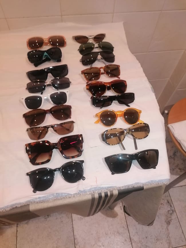 Algunas de las gafas de sol enviadas / Patateros solidarios