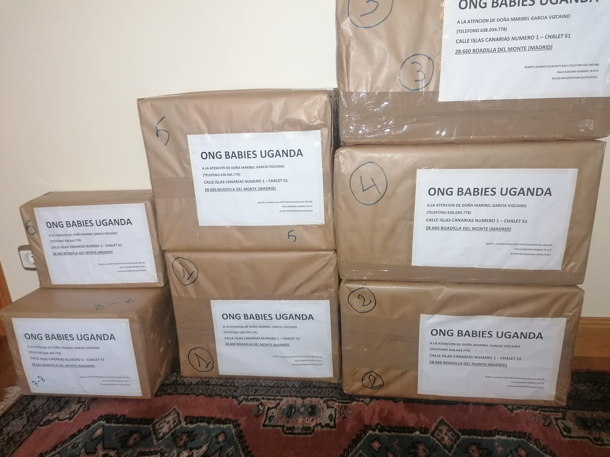 Ya ha sido enviado todo lo recibido a la sede que la ONG Babies Uganda tiene en Madrid para transportarlo después al país africano.