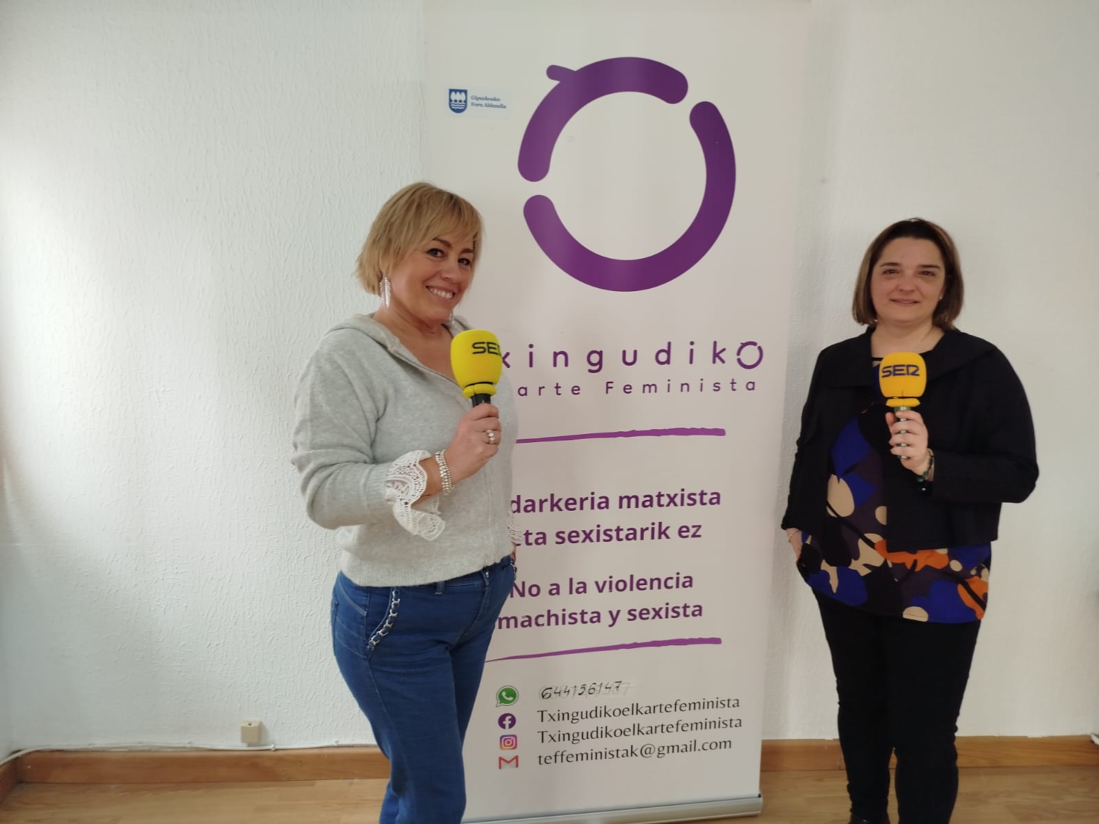 Mientras Katy cuenta su historia, el llanto de Leyre se cuela en la conversación. Katy se acerca, la abraza y la besa. Es la manifestación de la complicidad que se vive en este grupo. Leyre es integrante de Txingudiko Elkarte Feminista y también usuaria. Estando embarazada le tiró la riñonera a la tripa. "Ya cuando nació la niña, empezó con frases como 'no me haces ni caso', 'solo le haces caso a la niña', 'no me quieres', 'vaya mierda de comida que me has hecho'... Empieza todo el maltrato psicológico brutal con el que te hace sentirte culpable de todo, porque parece que tienes que llegar a todo y no llegas, y él te lo recrimina más". A Leyre le cuesta seguir hablando y romper a llorar varias veces. "La primera vez que empieza con lo físico es otra de las veces que viene del trabajo y me planta con una manaza impresionante, me levanta desde el cuello y me empotra contra la pared de la cocina".
