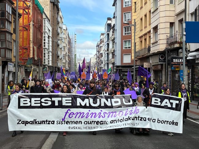 Miles de personas han salido a la calle en Vitoria este domingo 8 de marzo por la igualdad entre hombres y mujeres. A esta reivindicación clásica en el Día internacional de las mujeres, se ha unido, en esta ocasión, la protesta contra la guerra en Oriente Medio.