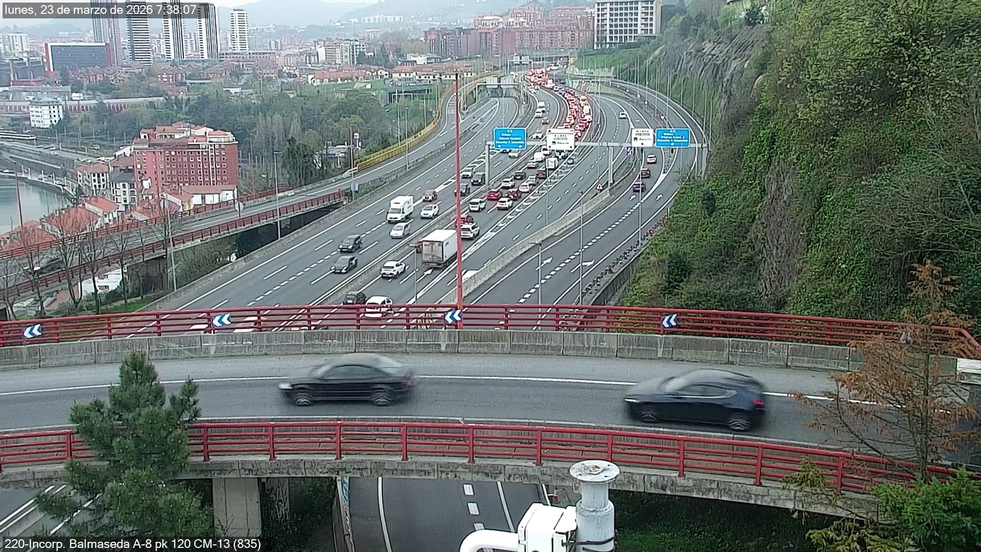 Tras varias horas de tráfico muy denso, la circulación en la A-8 se ha estabilizado y los principales puntos negros de entrada a Bilbao han recuperado un flujo más fluido.