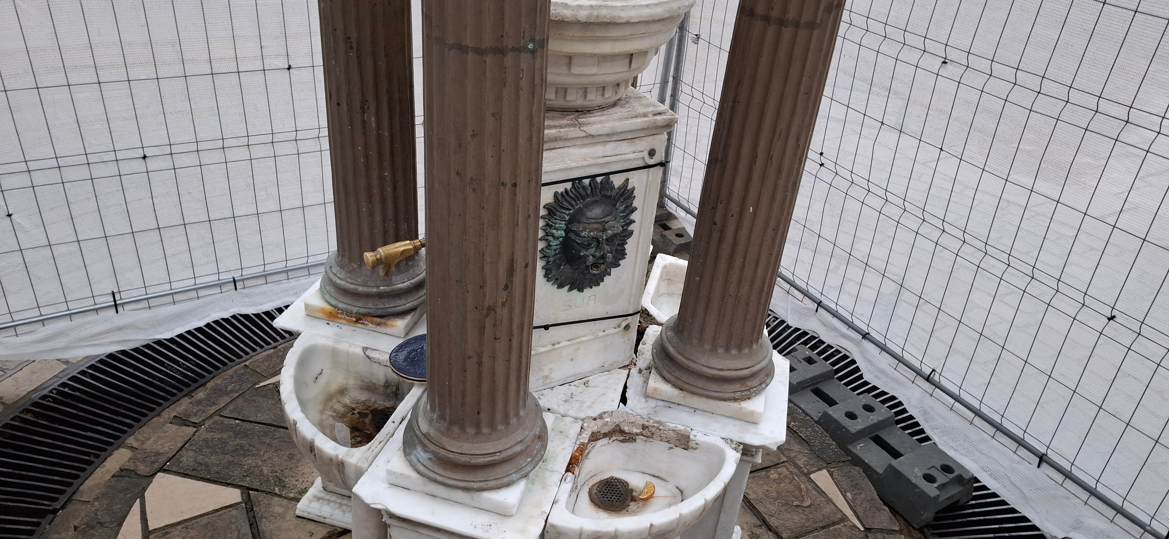 El proyecto incluye también la reparación de los daños ocasionados por vandalismo, mediante la reposición de la placa de mármol desaparecida, la recreación del elemento decorativo metálico del caño y la restauración de las partes afectadas de la pileta y la columna.