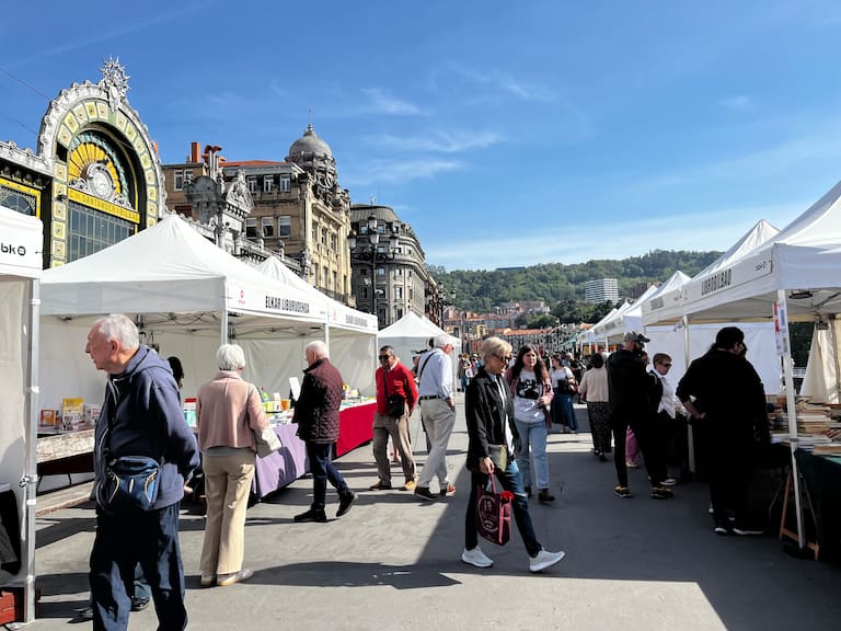 Bilbao ha celebrado este jueves el Día del Libro con buen tiempo, gran afluencia de público y un ambiente animado desde primera hora de la mañana. Un total de 19 jaimas han abierto sus puertas a las nueve de la mañana en la Plaza de las Mujeres, escenario que acoge por segundo año consecutivo esta cita literaria, situada frente al Teatro Arriaga y junto a la estación de tren.