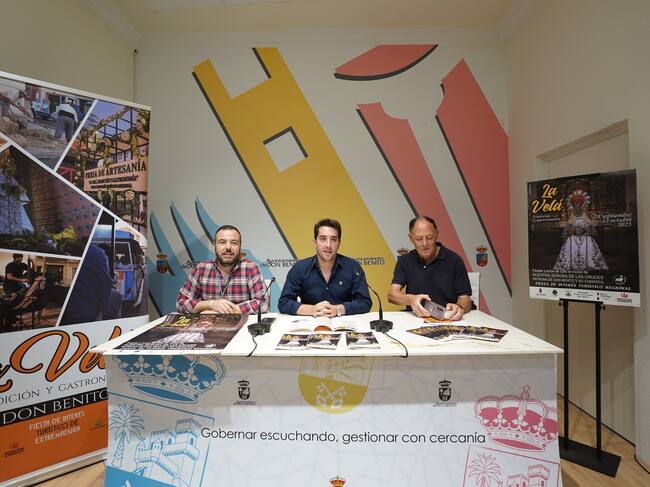 La Concejalía de Turismo del Ayuntamiento de Don Benito ha presentado la programación de La Velá 2025, declarada Fiesta de Interés Turístico de Extremadura. En el acto han intervenido el concejal, Álvaro Ballesteros; el párroco Fermín Solano; y el vicemayordomo de la Hermandad de la Virgen de las Cruces, Rubén Gordo.