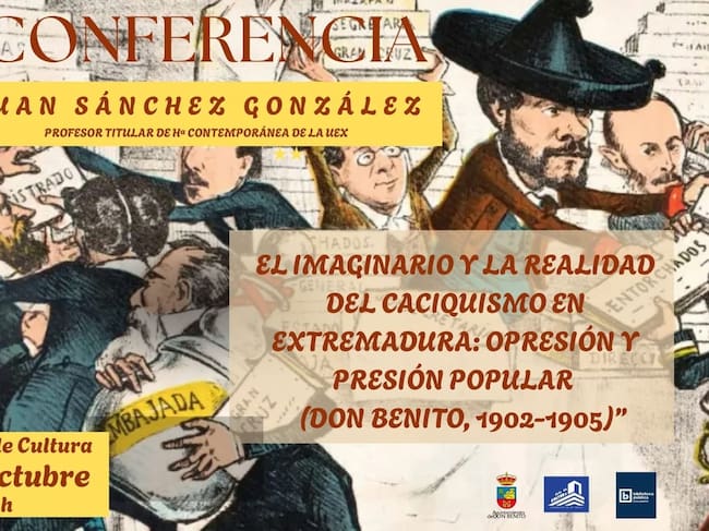 La Casa de la Cultura de Don Benito acogerá este miércoles, 22 de octubre, a las ocho de la tarde, la conferencia “El imaginario y la realidad del caciquismo en Extremadura: opresión y presión popular”, a cargo del profesor titular de Historia Contemporánea de la Universidad de Extremadura, Juan Sánchez González.
