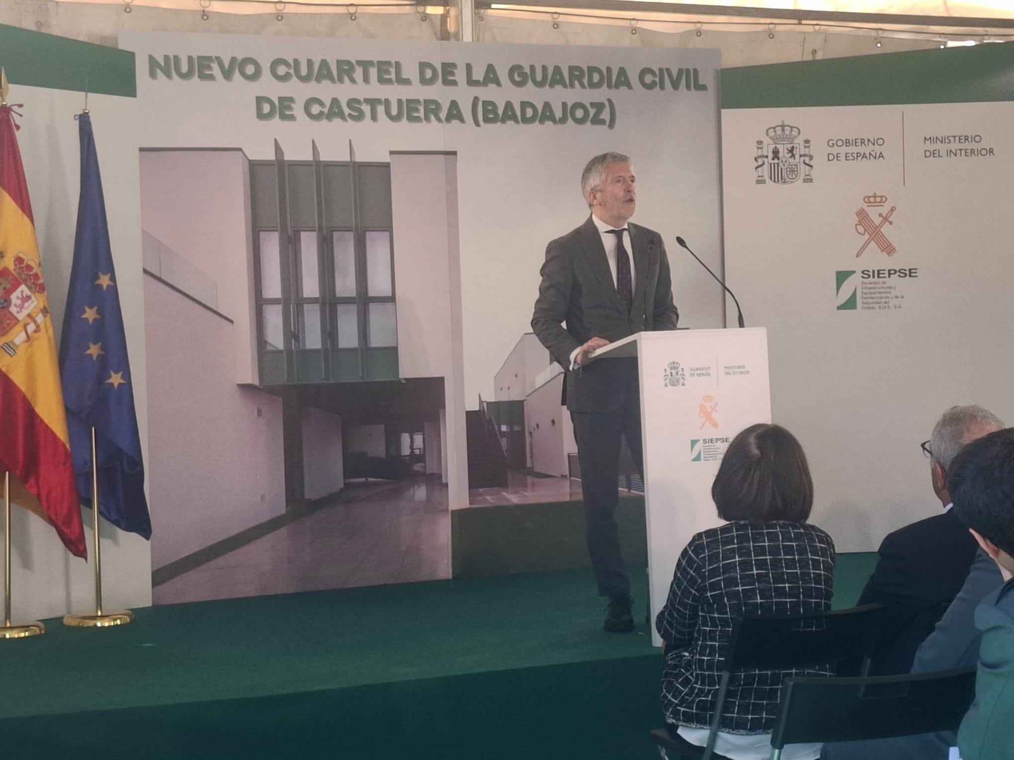 El ministro del Interior, Fernando Grande-Marlaska, ha inaugurado este lunes el nuevo cuartel de la Guardia Civil en Castuera, un “ejemplo de excelencia en la gestión pública”, según sus palabras, que ha sido posible gracias a una inversión de seis millones de euros dentro del Plan de Infraestructuras de Seguridad del Estado.