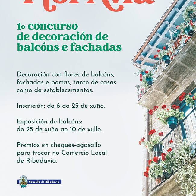 Desde o Concello de Ribadavia fan un chamamento a veciñanza a participar na exposición de balcóns e fachadas que será do día 25 de este mes de xuño ao 10 de xullo, período no que o tribunal realizará fotografías e valorará os participantes.