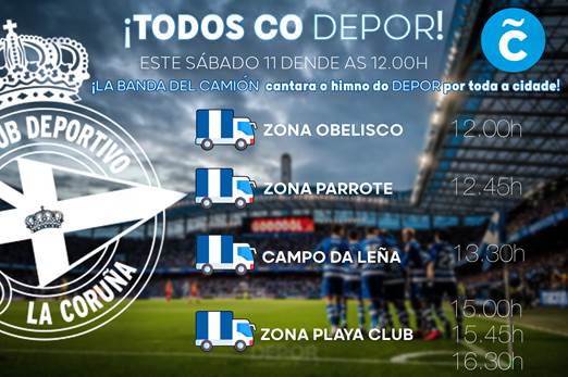 Mañana, La Banda del Camión liderada por Gandy recorrerá diferentes puntos de A Coruña para interpretar El Rock del Deportivo y animar de esta forma el ambiente en las horas previas al encuentro. A las doce estará en el Obelisco, a la una menos cuarto en O Parrote, a las una y media en el Campo da Leña y desde las tres de la tarde en el entorno del Playa.