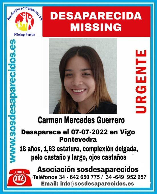 Las fuerzas de seguridad buscan a una joven de 18 años de edad, Carmen Mercedes Guerrero, que permanece desaparecida desde este jueves, y que fue vista por última vez en Vigo.