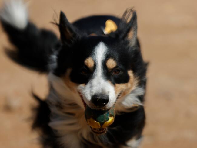 El perro, que en los últimos años ha ganado una importante presencia en los hogares españoles, celebra hoy su Día Mundial, motivo por el cual conviene recordar por qué ha sido y es considerado "el mejor amigo del ser humano". En la imagen, un perro juega con su pelota este jueves en Madrid. EFE/ Juanjo Martin / JUANJO MARTIN (EFE)