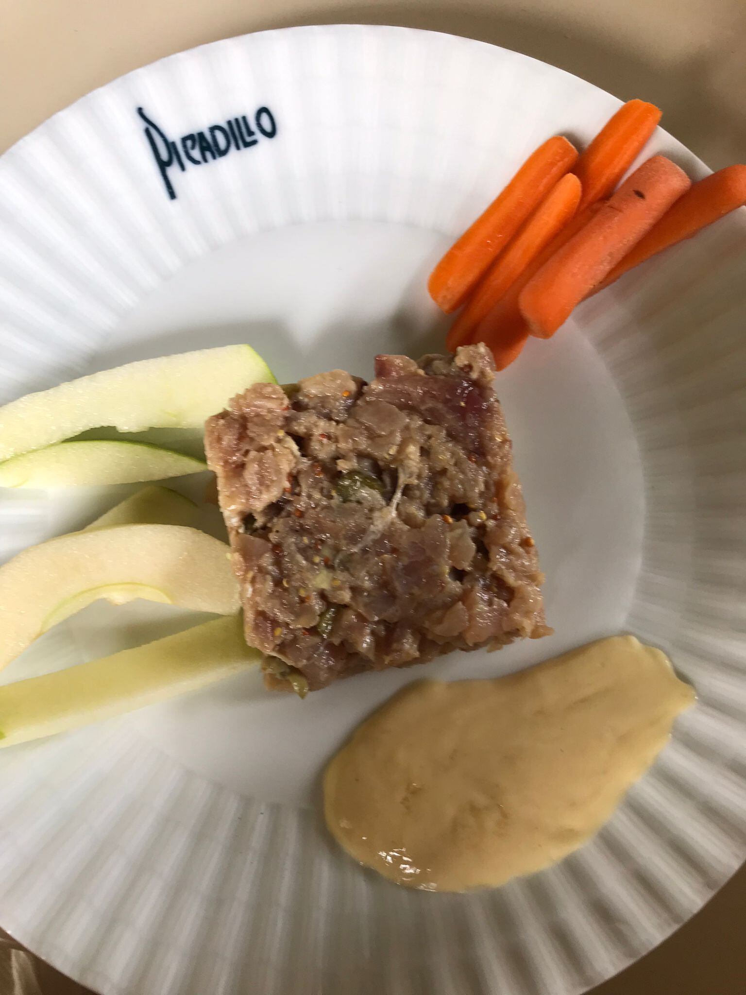 Se limpia el bonito de piel, espinas y todo lo negro, se corta en daditos pequeños y se reserva. Se pone en el fondo de un bol, el zumo de la lima, la salsa inglesa, la mostaza, la salsa de soja y la cebolleta rallada, se bate bien con barbillas hasta que emulsione, se añade el bonito, las alcaparras picaditas , los pepinillos también picados y los pimientos de Padrón picados y sin semillas , se mezcla todo bien y se tapa con un film, se deja en la nevera al menos 1 hora para que se haga bien y llegada la hora de comer se corta el aguacate en cuadraditos como el bonito y se mezcla. Se pone la mezcla en un aro de emplazar y se hacen tantos moldecitos como comensales, se coloca en el centro del plato y se adorna con zanahoria y manzana verde cortada en barritas y se acompaña con salsa de miel y mostaza. Está buenísimo.