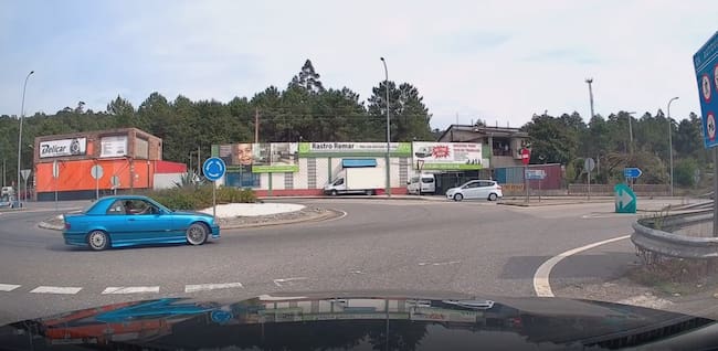Un BMW E36 realiza esta peligrosa maniobra en una rotonda de Mos