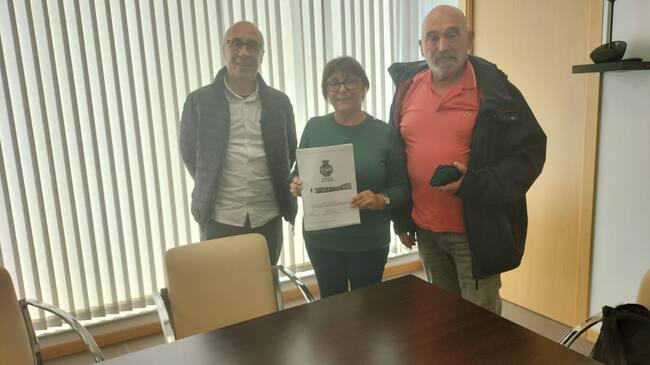 La alcaldesa pedánea de Camposancos, Merchi Martínez, junto a un concejal del BNG de A Guarda y un vocal de la ELM, tras recibir el informe del aparejador municipal.