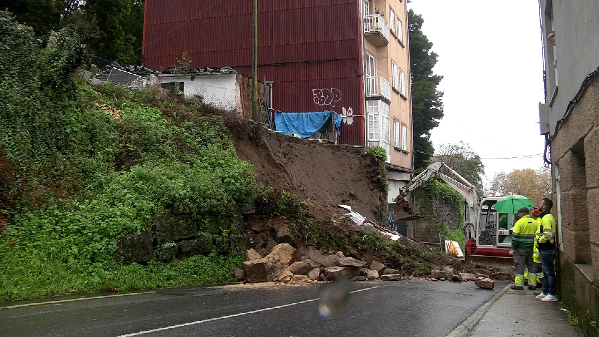 Las fuertes lluvias registradas en la ciudad de Vigo en los últimos días han provocado el desprendimiento de un muro en el barrio de Castrelos, que ha obligado a cerrar la calle Subida á Costa mientras se trabaja en las labores de limpieza.