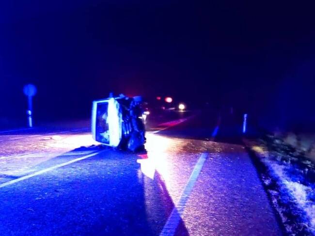 La furgoneta en la que viajaba como copiloto se salió de la vía y volcó sobre la calzada