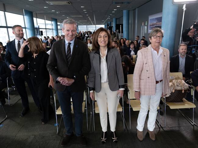 O presidente da Xunta, Alfonso Rueda, acompañado da conselleira de Medio Ambiente, Territorio e Vivenda, Ángeles Vázquez, e da conselleira do Mar, Rosa Quintana, asiste á inauguración da xornada de presentación da futura Lei de Ordenación do Litoral. A Coruña, 10/03/23. / David Cabezón @ Xunta de Galicia