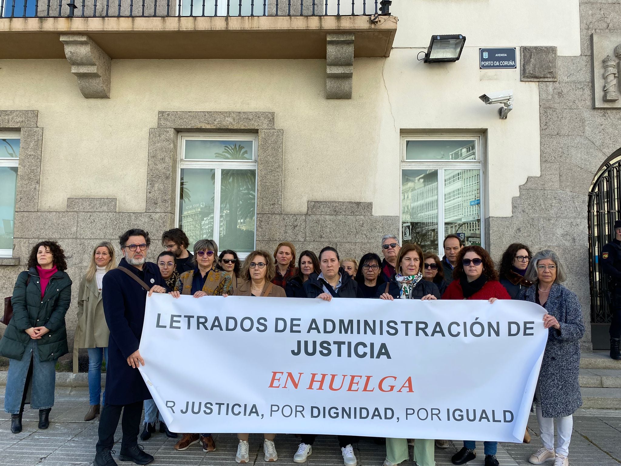 Los letrados de la Administración de Justicia enfrentan su octava semana en huelga indefinida. Hoy se concentraban a las puertas de la delegación del Gobierno. Tras dos meses parados y sin cobrar reconocen estar cansados, pero decididos a continuar. En Galicia hay más de 9.000 juicios parados y en A Coruña cerca de 30.000 expedientes bloqueados.
