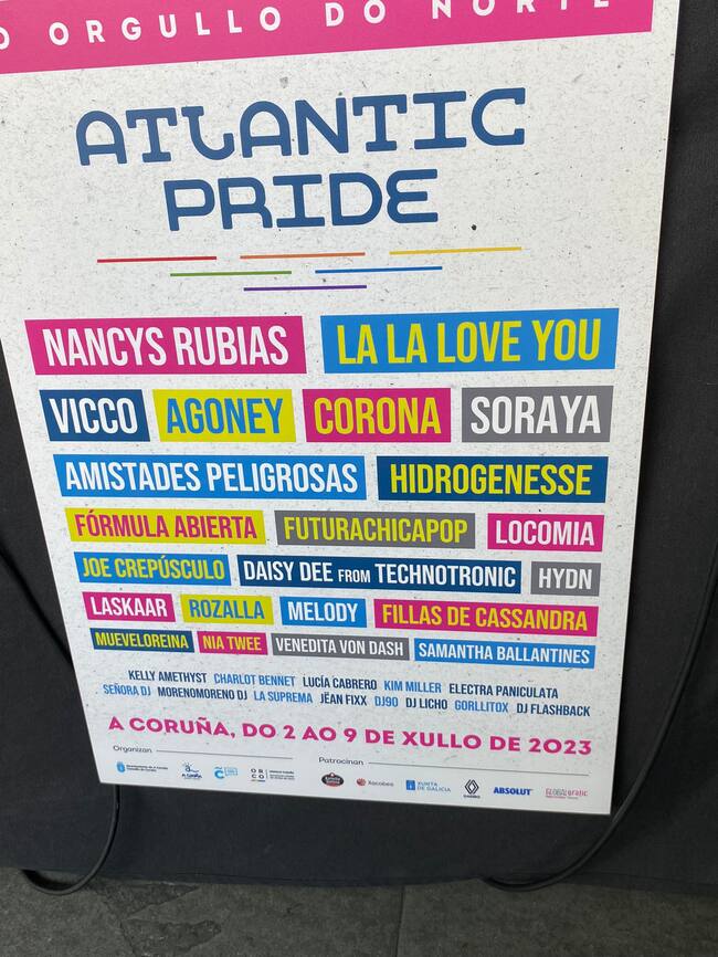 El Atlantic Pride celebrará su tercera edición del 2 al 9 de julio. El cartel de este año cuenta con artistas intergerenacionales. Nancys Rubias, Amistades Peligrosas, Joe Crepúsculo y Locomia destacan como opciones enfocadas para adultos y otras como La La Love You, Vicco, Fillas de Casandra y Melody para u público más joven. La alcaldesa Inés Rey ha destacado precisamente la inclusión que hay entorno al festival y a todos los públicos.