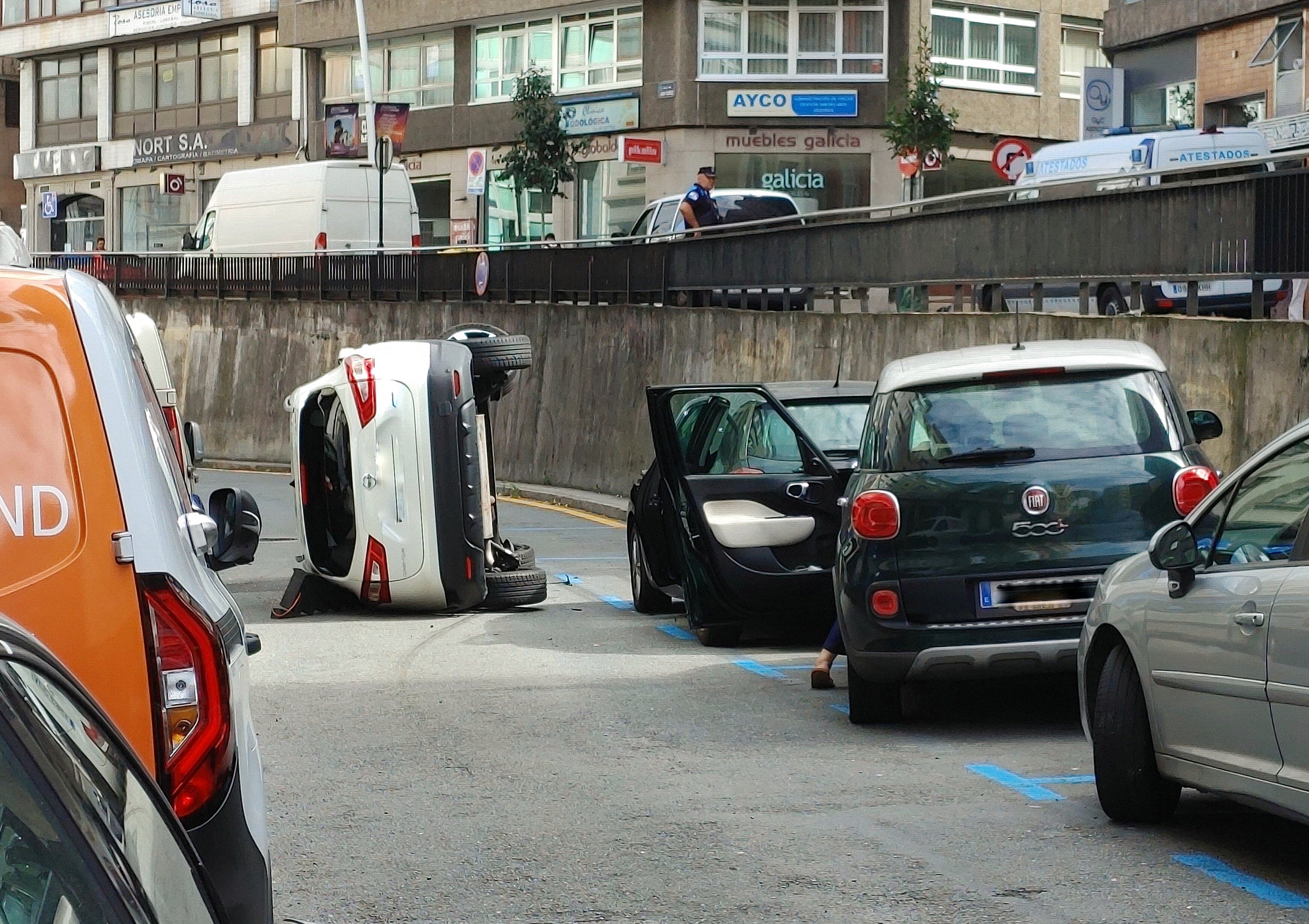 Los Bomberos de A Coruña tuvieron que excarcelar a dos mujeres que quedaron atrapadas dentro de su vehículo después de que este volcase en Juan Flórez.