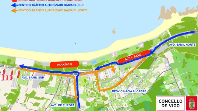 A partir de este miércoles, 26 de julio, empiezan los cambios en el tráfico de la principal playa de Vigo. Desde el Concello informan que los cortes empiezan debido al montaje de la prueba Dirt de O Marisquiño en la Avenida de Samil, entre las calles Argazada y Pertigueiras, por lo que estará habilitado un carril de circulación en sentido Coruxo. Para circular en sentido Bouzas los vehículos circularán por Pertigueiras, Dunas de Samil y Argazada.