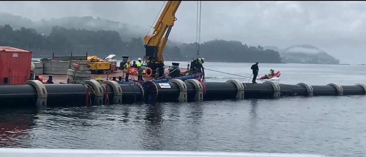 Si nada lo impide y todo marcha sobre lo previsto, este próximo lunes 11 de septiembre los técnicos de la Consellería de Infraestructuras conectarán el viejo con el nuevo emisario submarino ligado a la depuradora de Placeres. Actualmente se están haciendo diversas pruebas que culminarán con la ansiada conexión el lunes, tal y como ha explicado esta mañana desde Vilagarcía el ingeniero director de la obra y técnico de Augas de Galicia, David Hernáez. El nuevo emisario de la ría de Pontevedra tiene una longitud de 3,6 kilómetros y permitirá mejorar el tratamiento de las aguas residuales de Pontevedra, Marín, Poio y una parte del municipio de Vilaboa.