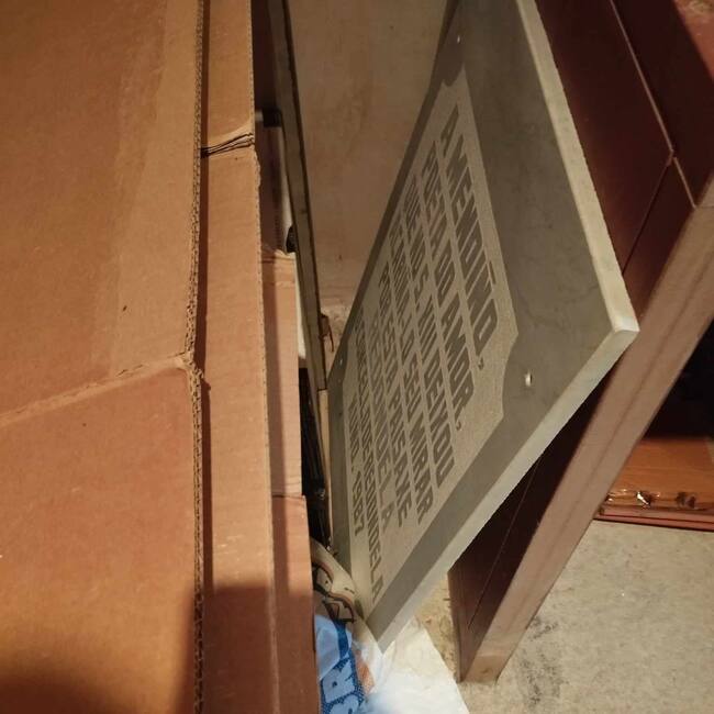 Placa de homenaje a Meendinho retirada de la Illa de San Simón, almacenada entre cajas