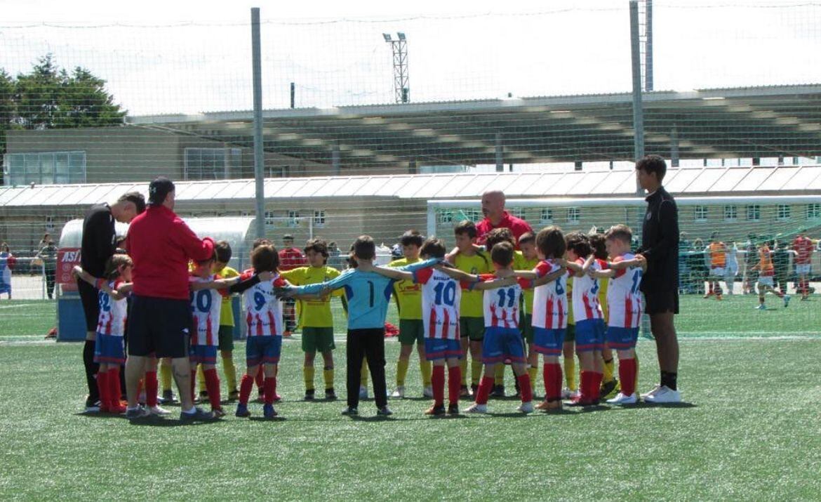 Los niños y niñas del Batallador SD se han concentrado en los campos de entrenamiento de San Pedro de Visma en protesta por un espacio para entrenar. Llevan 3 meses sin adiestrar porque solo pueden hacerlo en un campo de tierra en Labañou, sin duchas ni vestuarios.