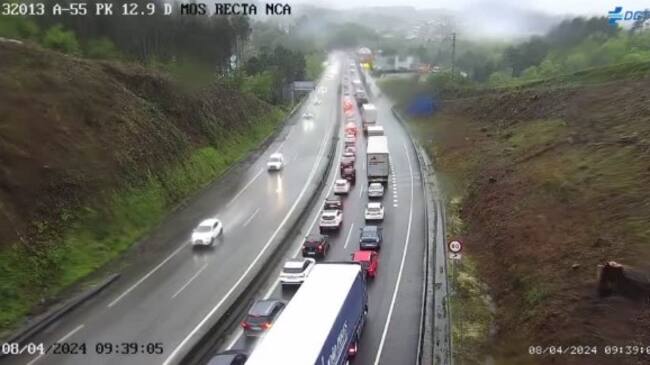 Una avería y varios accidentes provocan colas kilométricas en la A55 que duran todavía a las 9:50 de la mañana y que han llegado incluso a afectar a la A-52. Pese a la señalización y a un desvío habilitado para sortear un autobús averiado los viajeros han tenido que sumar esta mañana una media hora más de recorrido al habitual para sortear estos kilómetros de retenciones.