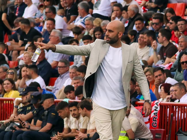 GRANADA, 19/05/2024.- El entrenador del Celta, Claudio Giráldez, durante el partido de Liga en Primera División que Granada CF y Celta de Vigo disputan este domingo en el Nuevo Estadio Los Cármenes. EFE/ Pepe Torres / Pepe Torres (EFE)