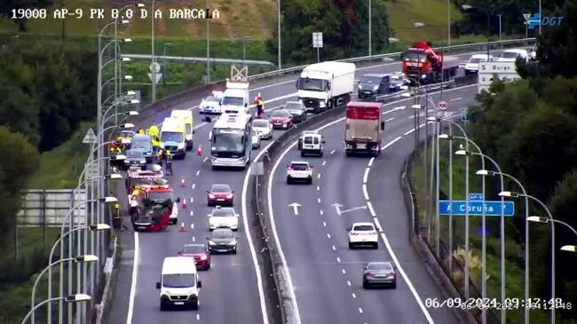 Un choque múltiple en la autopista en O Burgo provoca cuatro heridos