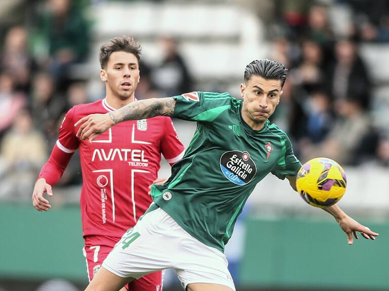 Luis Perea, ante el esférico en una jugada del Racing-Cartagena en A Malata (foto: Mero Barral para Cadena SER) / Mero Barral